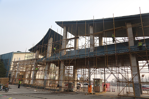 道路广场及展园维修工程主要以办公楼、主展馆及各展园建筑墙面、地面、防水维修以及园区道路、广场维修为主。目前,破损墙皮打磨处理约8000平方米,钢制结构除锈打磨刷漆约4500平方米。由于展园较分散、维修量大,计划增加施工人员,加快工程施工进度,确保按期完工。