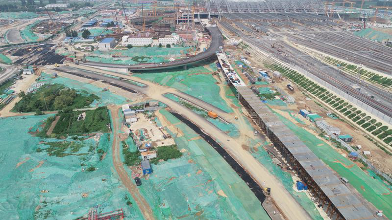 有限公司承建的新东站交通路网已初现雏形,在东客站综合交通枢纽进出场道路施工现场上,设备轰鸣不停,工人挥汗如雨,新东站交通路网建设“攻坚战”正酣。