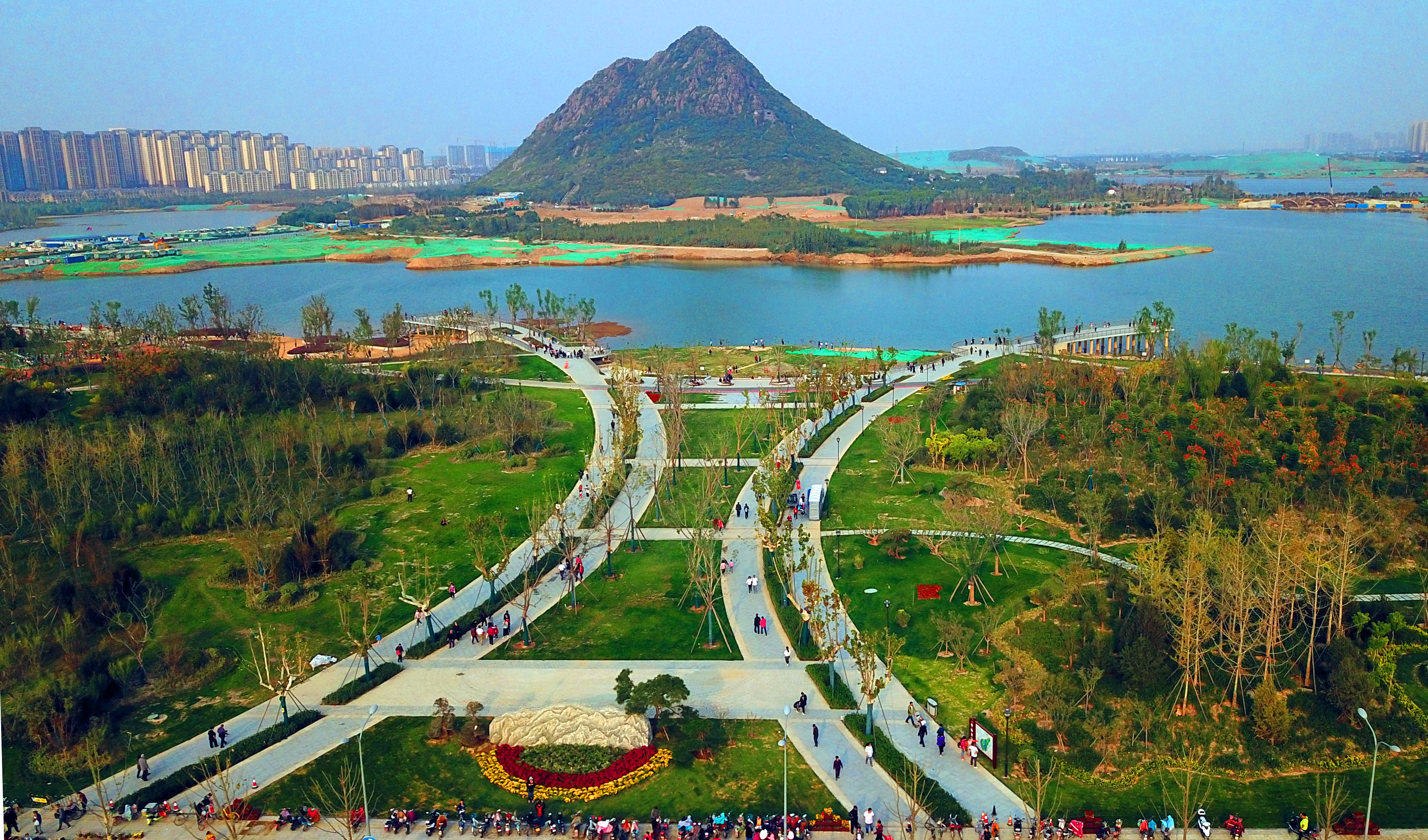 上述负责人告诉记者,经过各参建单位全体参建员工“5+2”、“白加黑”地不懈努力,截至目前,除了片区安置房建设、商业开发正在有序推进外,占地约9300亩,综合山、泉、湖、河、城、人、文、娱、景、绿等要素,运用传统园林手法打造的华山生态湿地公园,已取得阶段性建设成果,山水景观轮廓已初步显现,并在这个国庆黄金周成了全市新的旅游景观和城市名片。