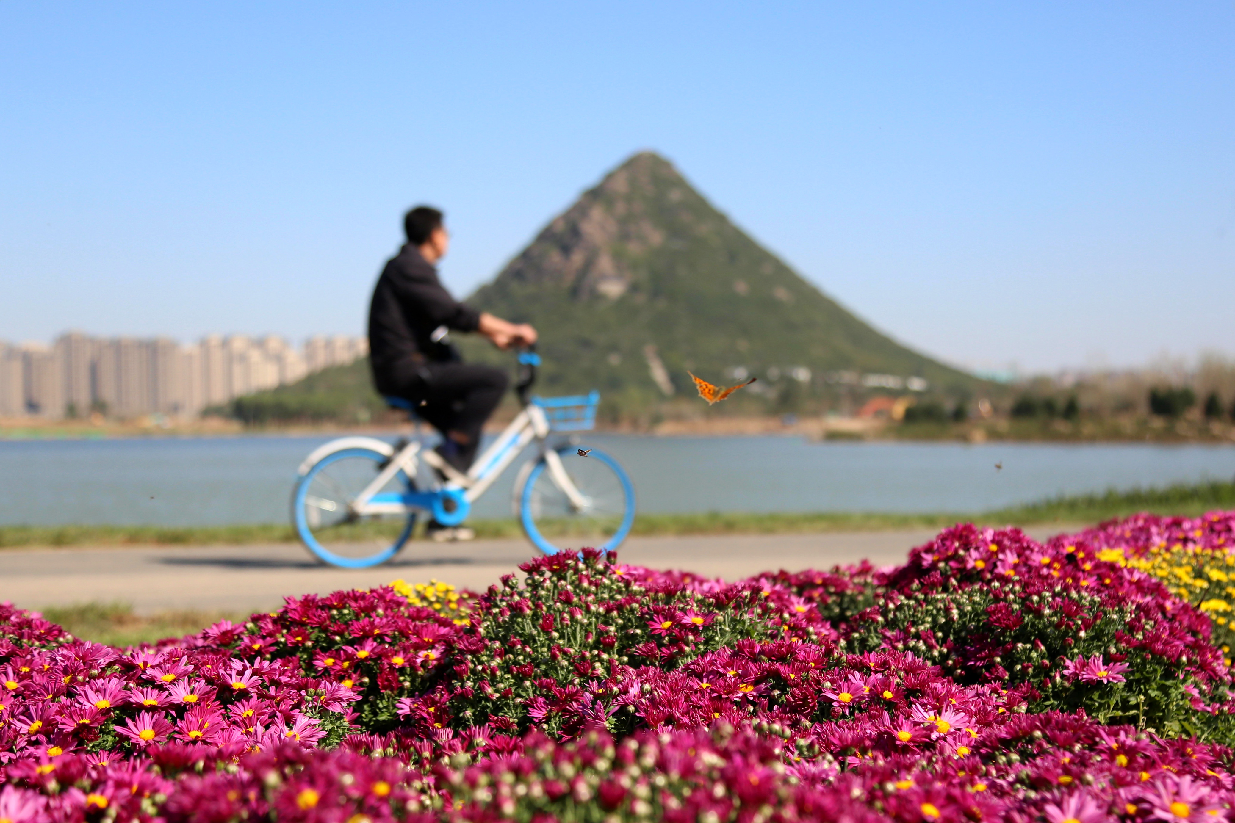 沿着环湖步道兴之所至,湛蓝的天空下,波光粼粼的湖面,生机盎然的草木,与平地高耸的华不注交相辉映,放眼四顾,山光水色尽收眼底,“特别美”。