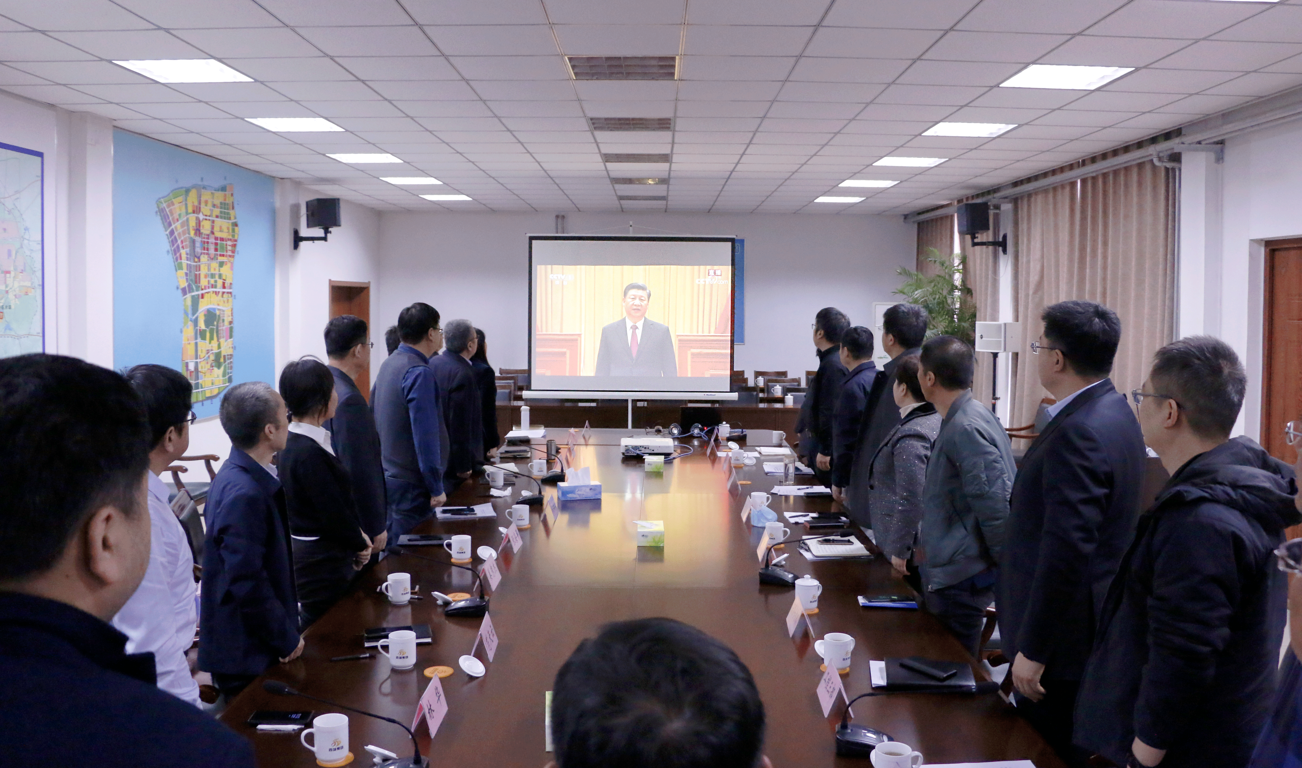 领导班子成员,集团部室、子公司相关负责同志收看大会实况,认真学习习近平总书记讲话精神。